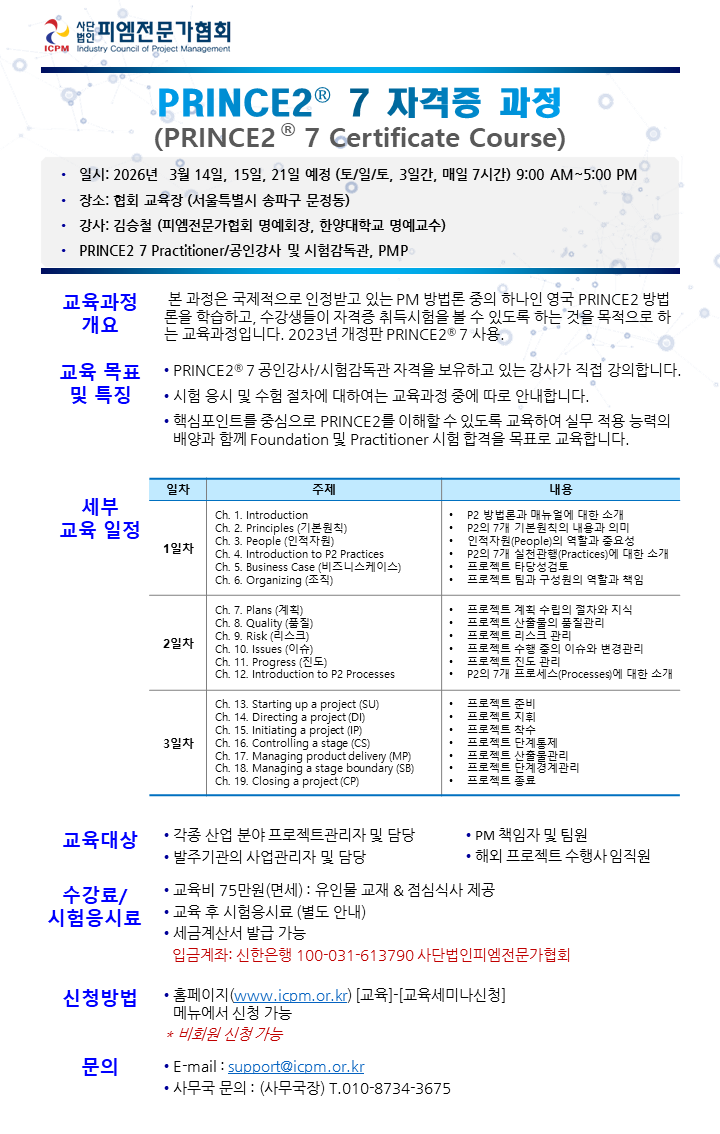 2026년 3월 PRINCE2 7 자격증 대비 교육과정 안내BESTMDHOT